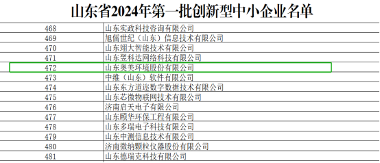 近日,山東省工業(yè)和信息化廳公布了“關(guān)于公布山東省2024年度第一批創(chuàng)新型中小企業(yè)的通知”。山東奧美環(huán)境股份有限公司(以下簡稱奧美環(huán)境)榮譽上榜。